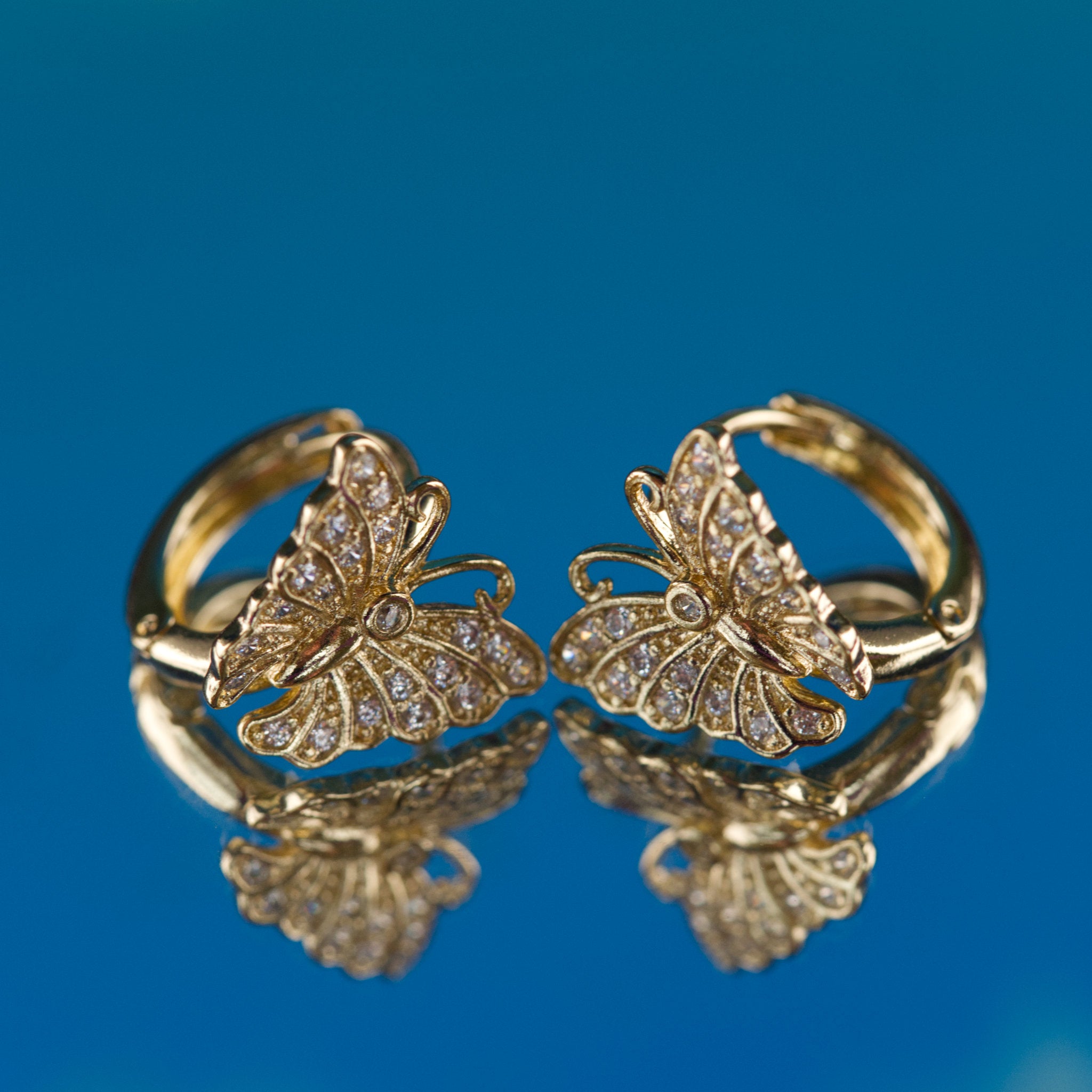 - Design: Butterfly-shaped hoops with sparkling cubic zirconia accents.