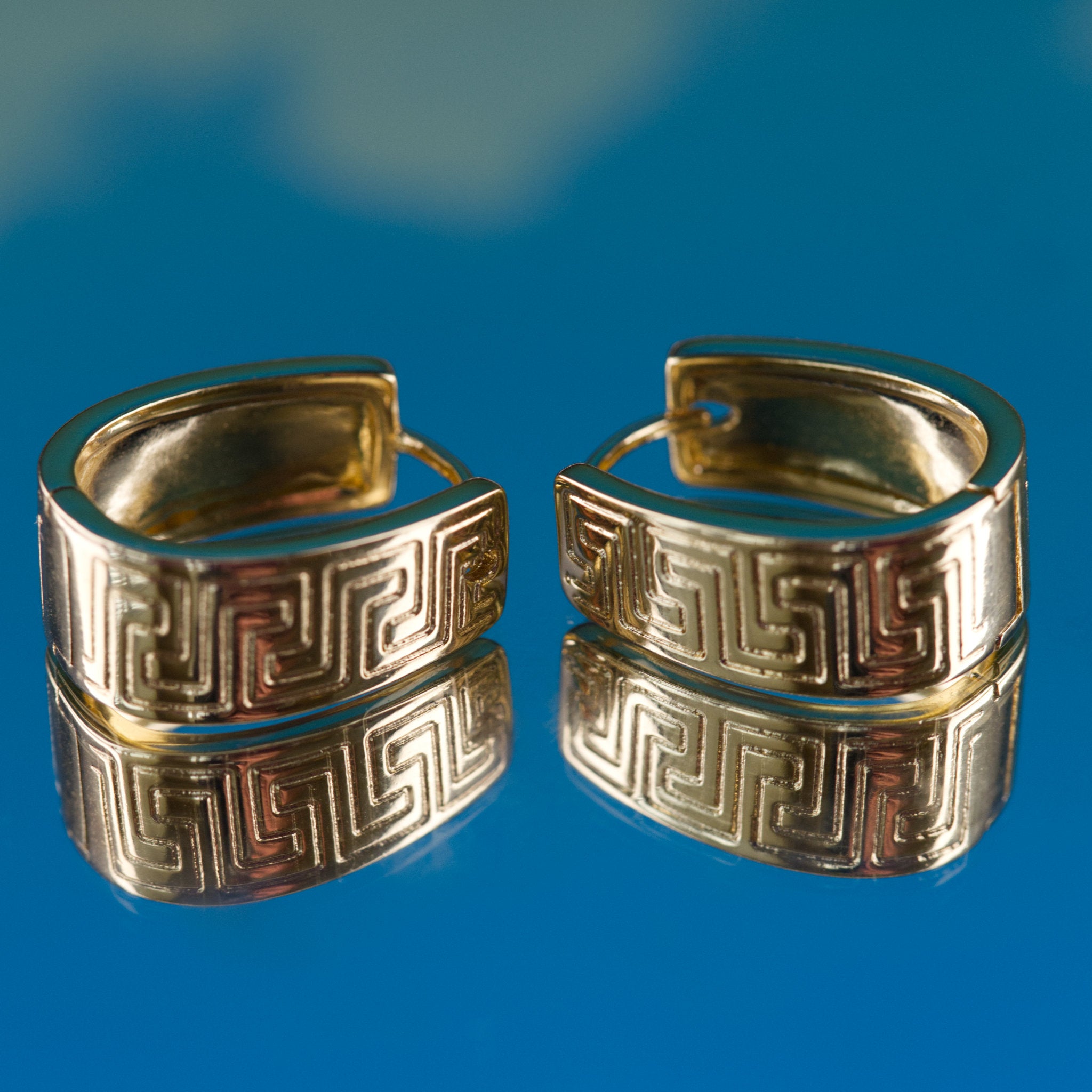 Elevate your jewelry style with these Geometric Engraved Hoop Earrings - 14K Gold-Plated, designed with a timeless cutout Greek-inspired pattern. Their bold yet refined silhouette offers a perfect balance between tradition and modern elegance. Crafted for durability and everyday comfort, these hoops make a versatile addition to both casual and formal outfits.