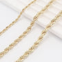 The Rope Chain Necklace is a bold classic that never goes out of style. Featuring an intricate twisted rope design, this chain exudes strength and sophistication. Crafted on a durable metal base and finished with a 14K gold-plated coating, it offers radiant shine and long-lasting wear. Perfect for wearing solo as a statement piece or pairing with a pendant for a personalized look.